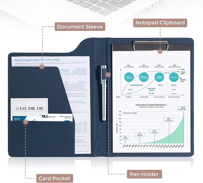- Designed with 1 notepad clipboard, 1 pen holder, 1 A4 document sleeve, and 1 card pocket