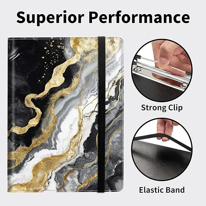 Padfolio Folder with Clipboard,Portfolios Organizer Clipboards with Storage Clipboard Writing Pad PU Leather Conference Document Organizer with Business Card Holder,Black Gold Marble