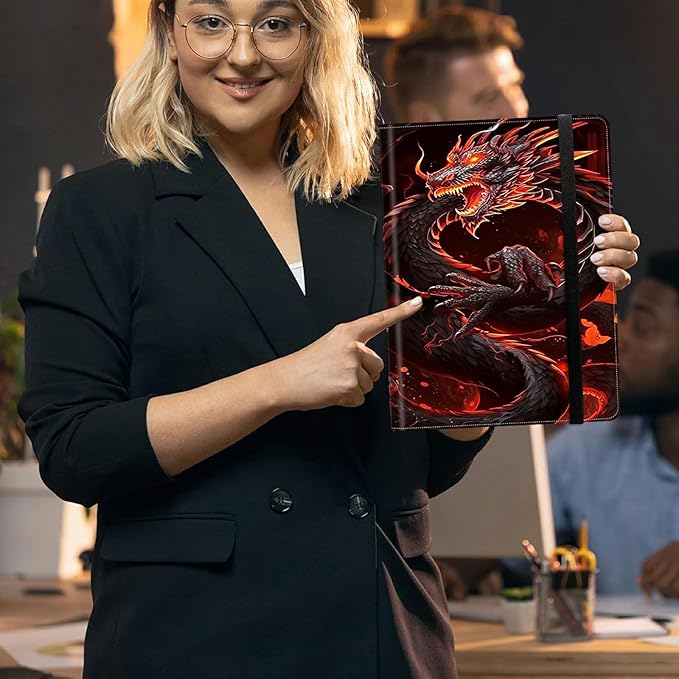 Red Dragon Padfolio Folder with Clipboard,Portfolios Organizer Clipboards with Storage Clipboard Writing Pad PU Leather Conference Document Organizer with Business Card Holder