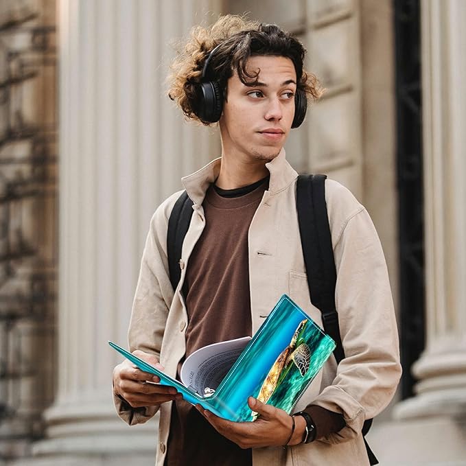 Sea Turtle Padfolio Folder with Clipboard,Portfolios Organizer Clipboards with Storage Clipboard Writing Pad PU Leather Conference Document Organizer with Business Card Holder