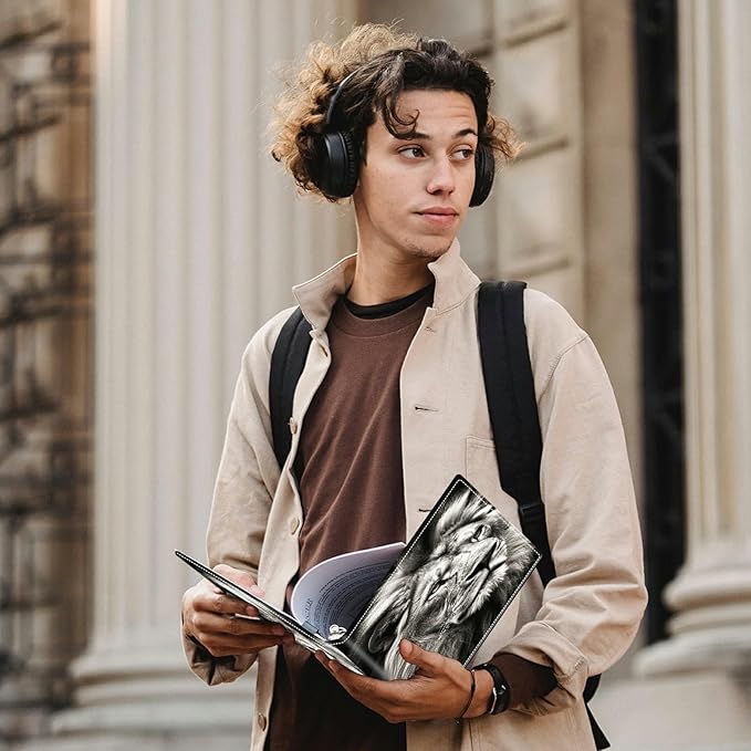 Lion Padfolio Folder with Clipboard,Portfolios Organizer Clipboards with Storage Clipboard Writing Pad PU Leather Conference Document Organizer with Business Card Holder