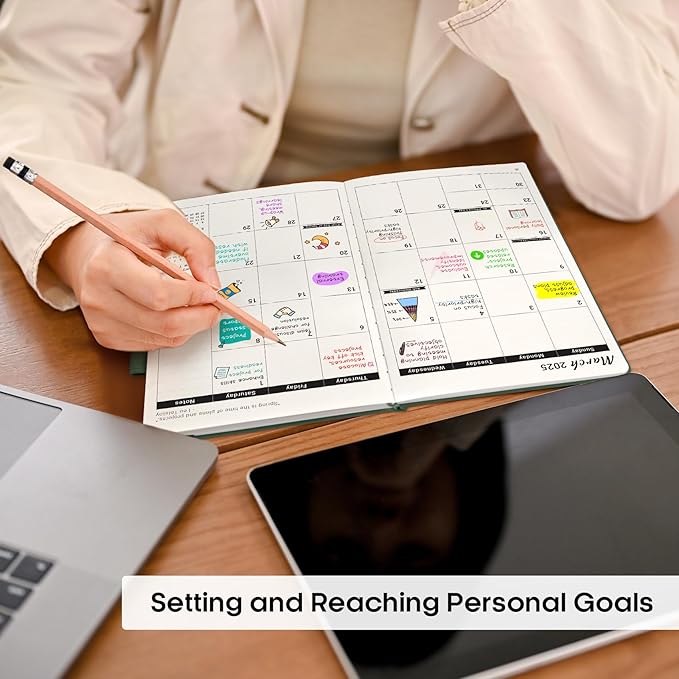 - Premium High Quality: Made with high-quality thick paper for a smooth writing experience, this 2025 planner boasts a sturdy hardcover, an elastic band, and a bookmark for added convenience. The A5 size (5.8" x 8.4") is perfectly portable, with a back pocket for extra storage, making it ideal for easy planning.