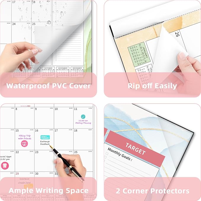 - 【22" x 17" Large Calendar】 Our office desk calendar, designed with productivity in mind, offers an expansive writing area that allows you to effortlessly schedule, plan, and keep track of crucial dates, deadlines, and holidays. Featuring prominently displayed holiday markings and convenient 12-month referencing calendars, this calendar ensures that you can effortlessly visualize and manage your daily, weekly, and monthly schedule with utmost ease and efficiency.